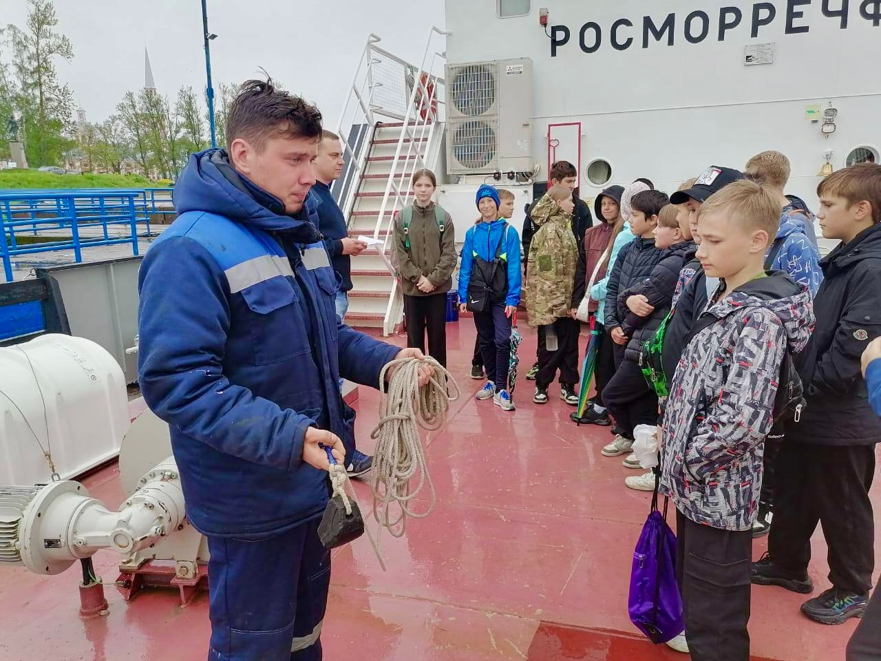 В рамках летней практики ученики морских классов приняли участие в увлекательном занятии на борту теплохода "Ладожский". Экскурсия началась с самого ответственного места – капитанского мостика, где юные моряки смогли увидеть работу современного оборудования и узнать о тонкостях управления большим судном.