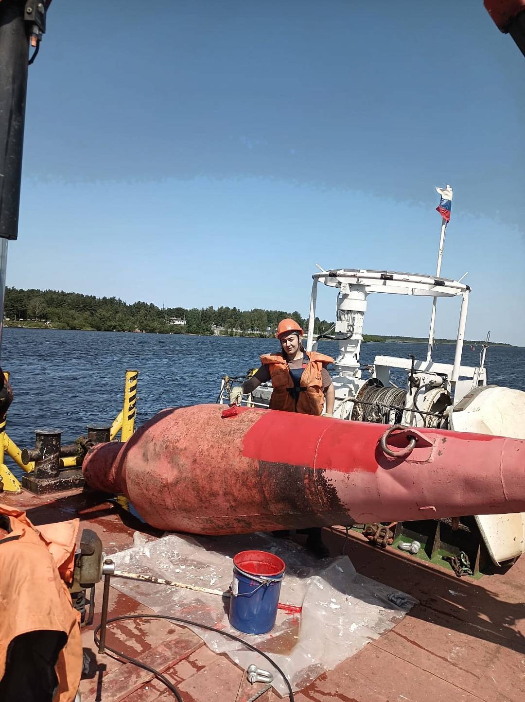 Сегодня наши специалисты провели важную работу по поддержанию средств навигационной обстановки на Кошкинском фарватере реки Невы. Особое внимание было уделено покраске буя-сигары (ледового буя), который остаётся на своём посту даже в межнавигационный период.