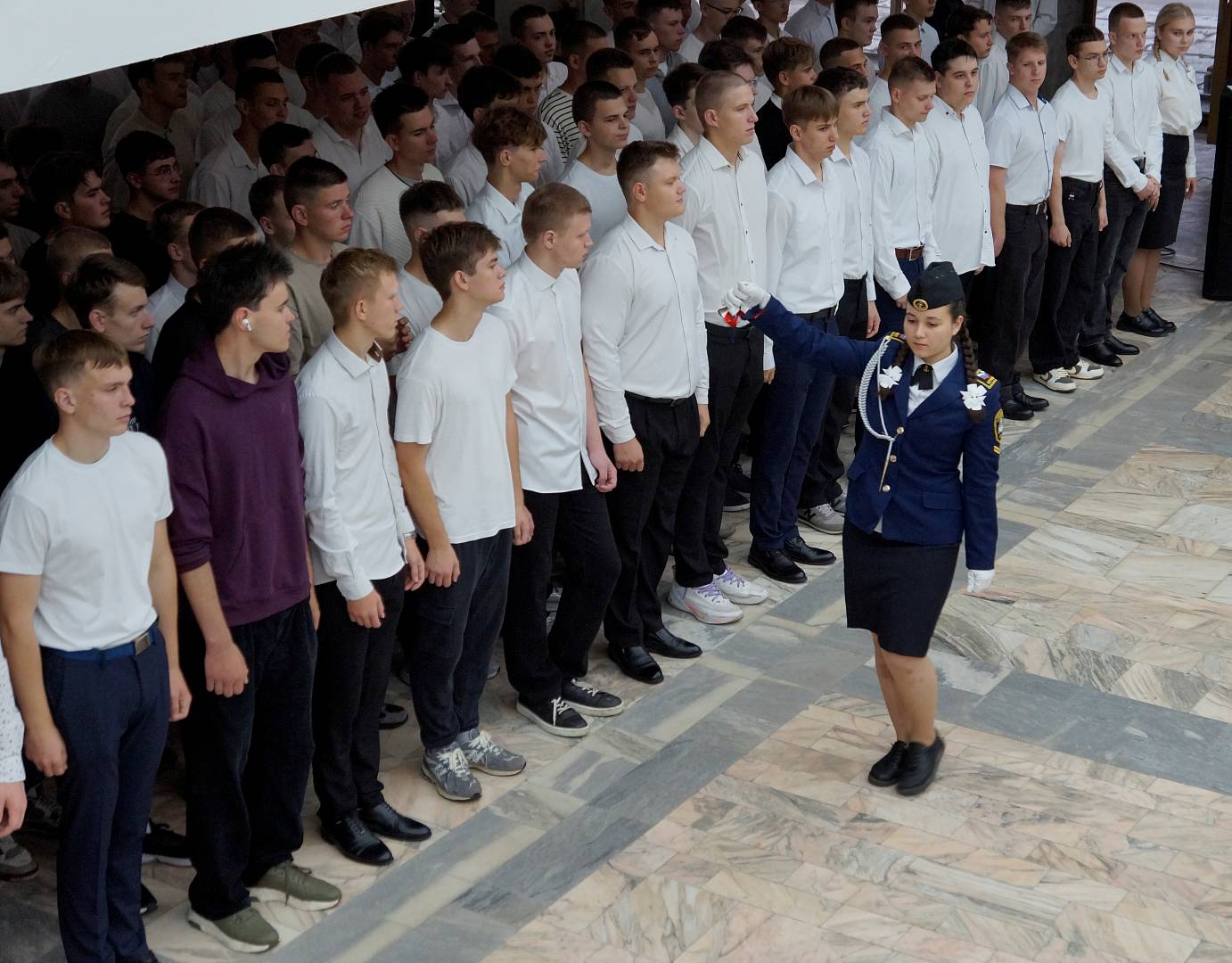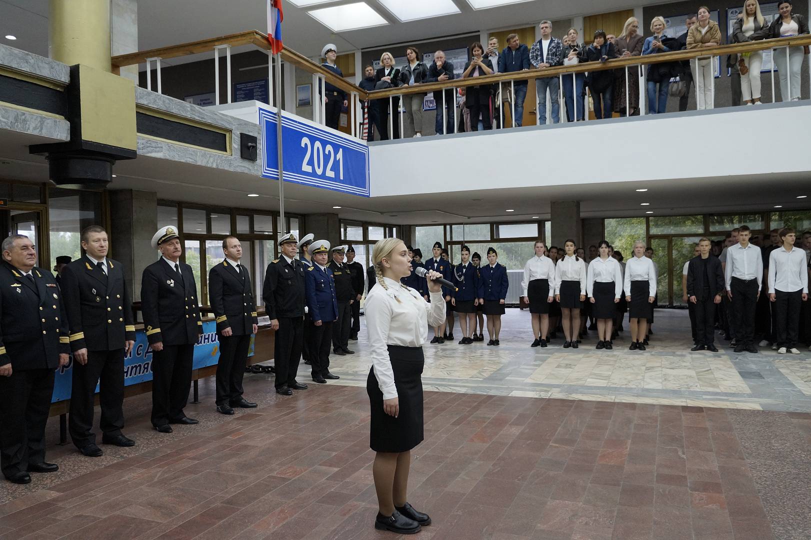 Начальник Управления внеучебной и воспитательной работы университета Игорь Борисович Белоголовцев зачитал поздравления от Министра транспорта Российской Федерации и руководителя Федерального агентства морского и речного транспорта, в которых подчеркивалась важность выбранной курсантами профессии и необходимость усердной учебы.