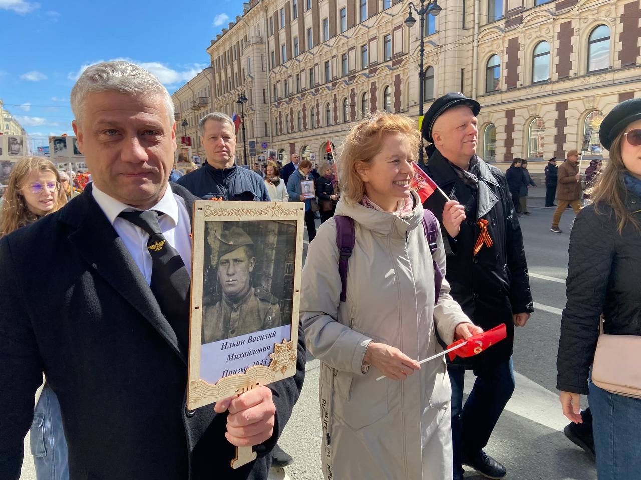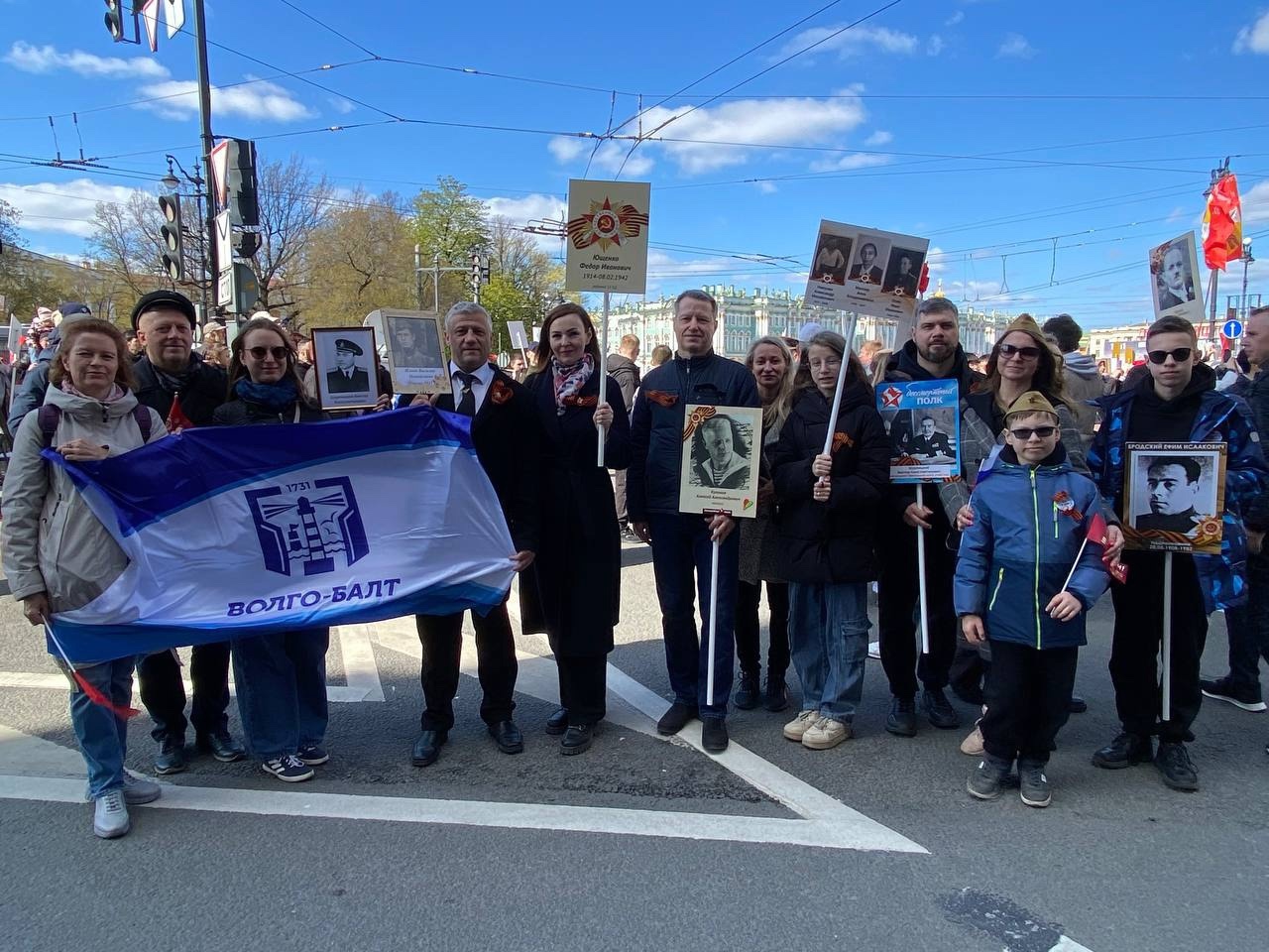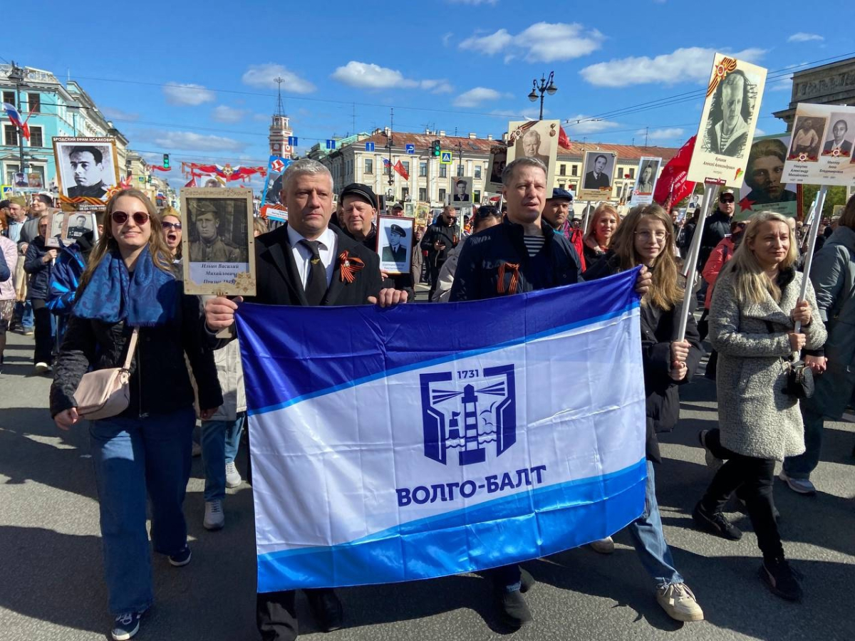 В День Победы сотрудники ФБУ «Администрация «Волго-Балт» вместе с семьей Виктора Константиновича Шурпицкого, легендарного ветерана «Дороги жизни» и руководителя Волго-Балтийского водного пути, приняли участие в акции «Бессмертный полк» в Санкт-Петербурге.