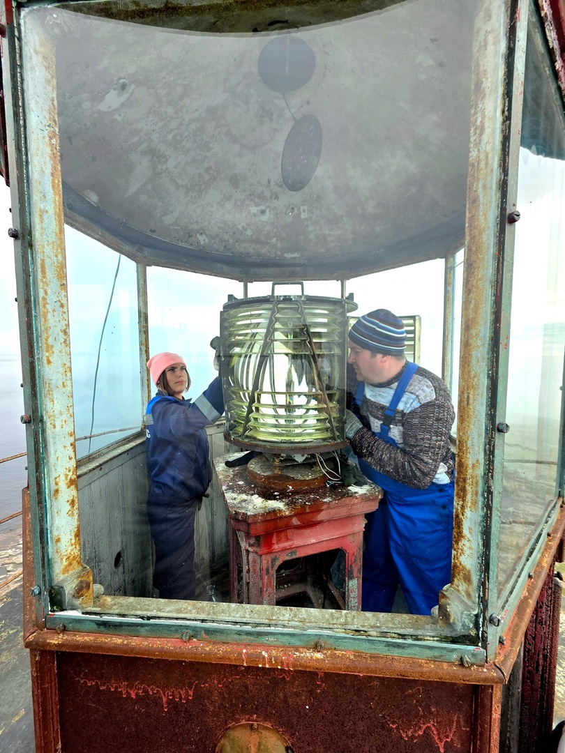 по текущему обслуживанию линзы маяка, обеспечивая его бесперебойную работу.