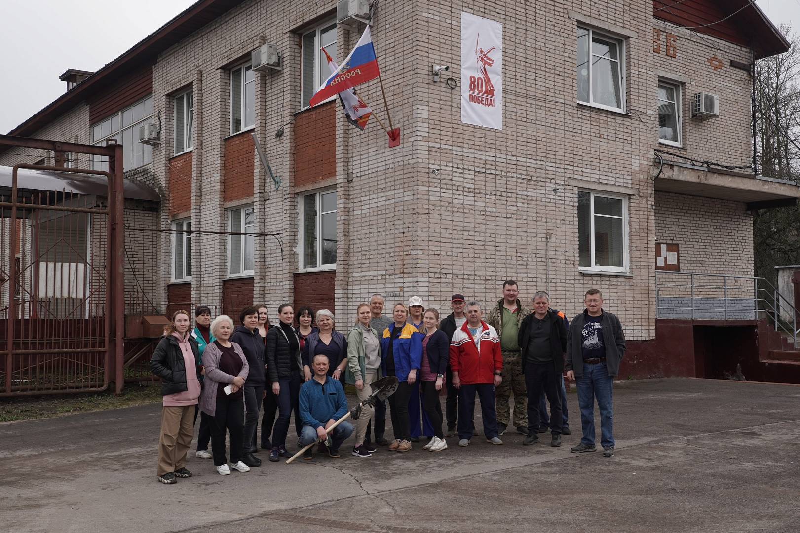 🪴 На территории Новгородского района водных путей и судоходства был проведён субботник, организованный руководством и профсоюзной (цеховой) организацией филиала. Сотрудники произвели уборку территории, привели в порядок сад и клумбы: побелили деревья, спилили старые ветки, обновили землю на клумбах, посадили цветы и кустарники. Также была размещена праздничная символика, посвящённая 80-летию Победы в Великой Отечественной войне.