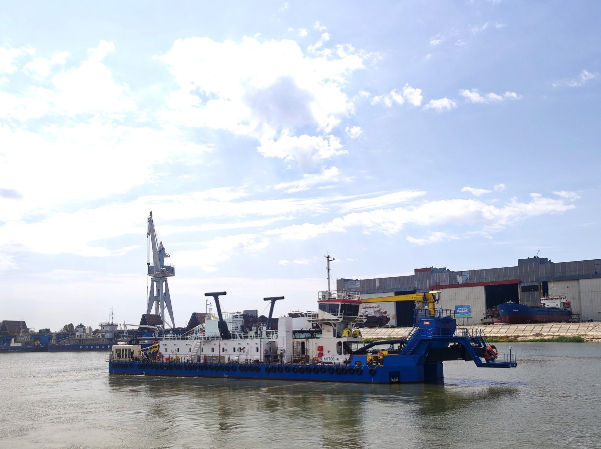 C производственной площадки «Лотос» Южного центра судостроения и судоремонта ОСК вышел на ходовые испытания самоходный земснаряд с фрезерным рыхлителем «Лотос-4» проекта 93.159.1.