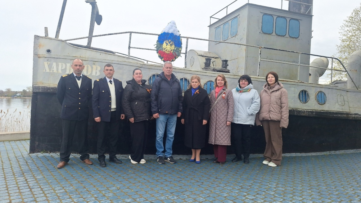 06.05.2025 Невско-Ладожский район водных путей и судоходства совместно с Главой Администрации Новоладожского Городского Поселения Волховского Муниципального Района Ленинградской Области Кравцовой Еленой Константиновной возложили венок к Памятнику Ладожской военной флотилии, расположенному на берегу Волхова в Новой Ладоге.